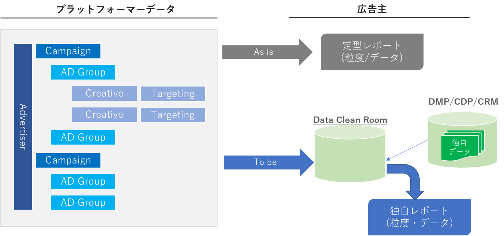 データクリーンルームの疑問・悩みを解消、Google ADH/Yahoo! DCR/Meta AA/Amazon Clean Room・AMC/Line LDH/Twitter DCRなどの使い方/事例やメリデメはもちろん、その関連領域である個人情報保護法や技術規制に対応した広告効果検証/広告配信手法などを取りまとめています。